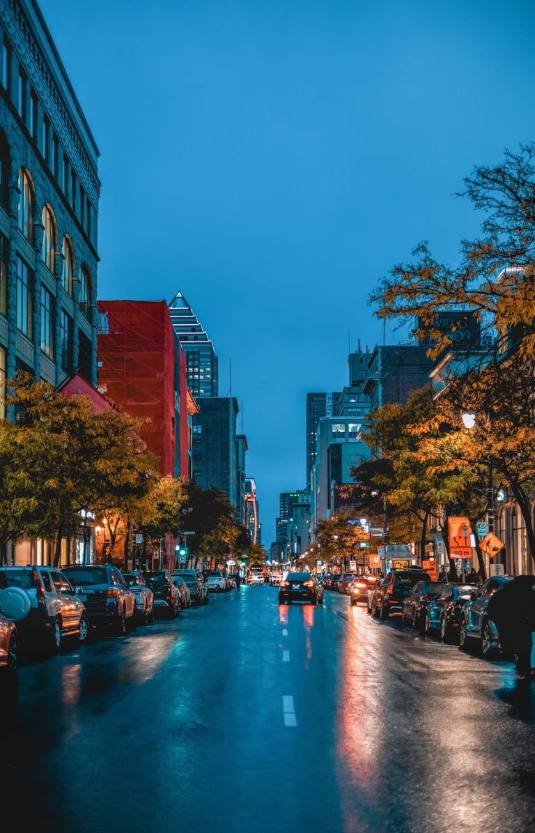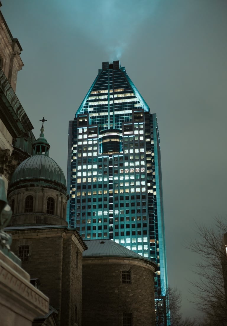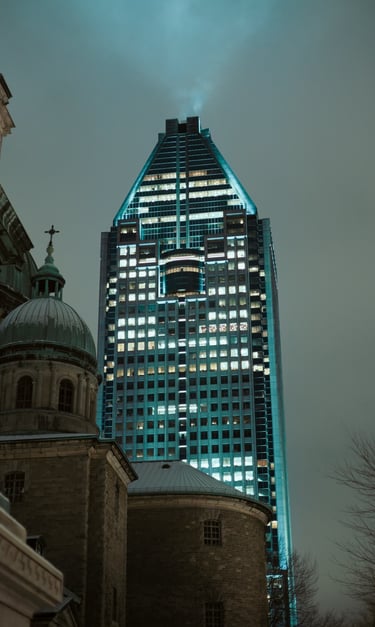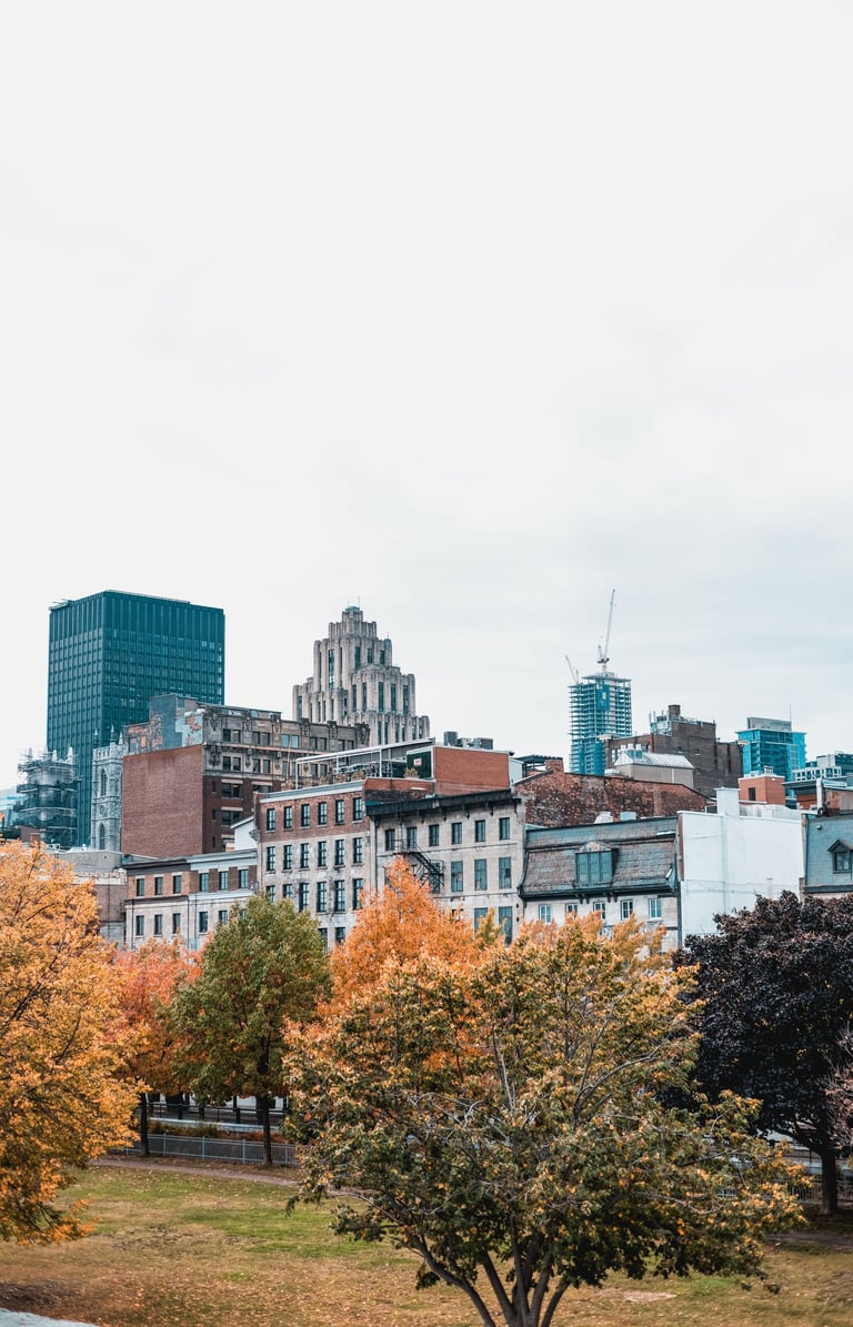 a city skyline with a blue sky and a few buildings, montreal photographer